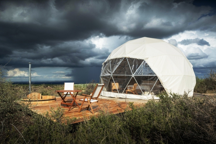 f) Lüks çadır: Doğada lüks ve konforlu konaklama imkânı sunan, temelsiz ahşap platform üzerine, doğal ışık alacak şekilde düzenlenen, doğa ve hava etkilerine karşı korunaklı, ilgili akreditasyon kuruluşlarından sertifika almış yangına dayanıklı, ses ve su geçirmeyen çadır malzemesi kullanılan, nitelikli tefriş dekorasyon malzemeleri kullanılan bez çadırlar, bell tent, yurt, domme, bubble, safari çadırı, çatısı açılabilen ya da yarı açık çadırları,