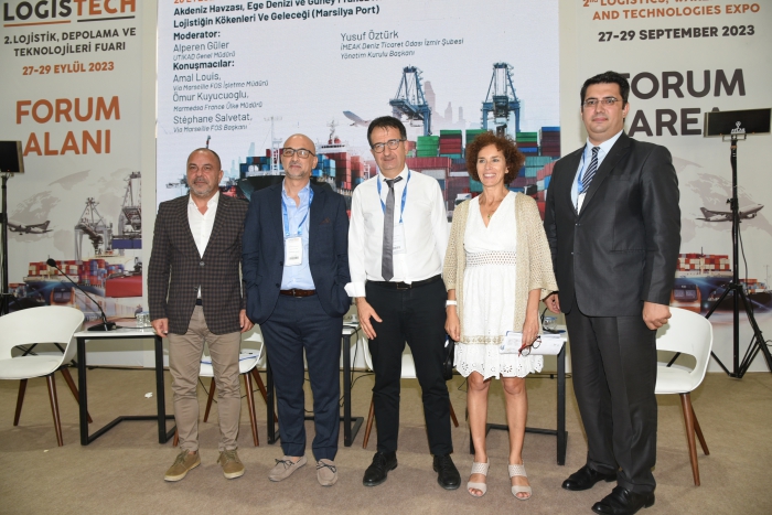 Moderatörlüğünü Uluslararası Taşımacılık ve Lojistik Hizmet Üretenleri Derneği ( UTİKAD) Genel Müdürü Alperen Güler'in yaptığı "Akdeniz Havzası, Ege Denizi ve Güney Fransa Rotasında Lojistiğin Kökenleri ve Geleceği (Marsilya Port) Oturumuna, İMEAK Deniz Ticaret Odası İzmir Şubesi Yönetim Kurulu Başkanı Yusuf Öztürk, ViaMarseilleFOS (Marsilya FOS Limanı) Başkanı StephaneSalvetat, ViaMarseille FOS İşletme Müdürü Amal Louis, Marmedsa Fransa Ülke Müdürü Ömür Kuyucuoğlu katıldı.