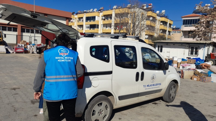 MİLAS’A GELEN AFETZEDELERİN TEMEL İHTİYAÇLARI KARŞILANIYOR Belediye Sosyal Destek Hizmetleri Müdürlüğü’ne bağlı ekipler de, Milas’a ulaşan depremzedelerin temel ihtiyaçlarını gidermek için başlatılan çalışmaları hafta sonu da aralıksız sürdürüyor. Depremzedeler tarafından talep edilen temel ihtiyaçları koliler halinde ikamet ettikleri adreslere ulaştıran ekipler Ek Hizmet Binası arka bahçesindeki hummalı çalışmalarına devam etmekteler. YARDIMLARINIZI EK HİZMET BİNASI ARKA BAHÇESİNE TESLİM EDEBİLİRSİNİZ Milas Belediyesi’nden yapılan bilgilendirmede; afet bölgesinde bulunan ve Milas’a ulaşan depremzedeler için başlatılan yardım kampanyasına destek olmak isteyen vatandaşların, yardım malzemelerini Belediye Ek Hizmet Binası arka bahçesinde görev yapan personellere teslim edebilecekleri belirtildi.