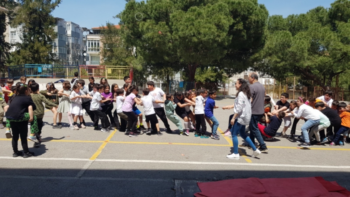 SINIFLAR ARASI SPOR MÜSABAKALARI YAPILDI Okul bahçesine kurulan ses sistemi ile günümüz popüler şarkılarıyla dans eden Agâh Efendi öğrencileri, ulusal türkülerimiz eşliğinde veliler ile birlikte de halk oyunları oynadı. Okul rehberlik öğretmeni ve beden eğitimi öğretmeni eşliğinde öğrencilerin yaşlarına uygun olarak seçilen halat çekme, çuval yarışı gibi oyunlarla öğrenciler de sınıflar arası müsabakalar yaparak eğlendi. Yapılan etkinlikte çocukların kültürümüze ait hıdırellezi, türkülerimizi, halk oyunlarımızı ve çeşitli spor müsabakalarını eğlenerek öğrendiğine dikkat çeken Okul Müdürü Burçak Akseki, “Etkinliğin gerçekleştirilmesi için çaba sarf eden saygıdeğer öğretmenlerimi, kıymetli okul aile birliği üyelerimi, güzide velilerimi ve sevgili öğrencilerimi tek tek tebrik ederim.” dedi.