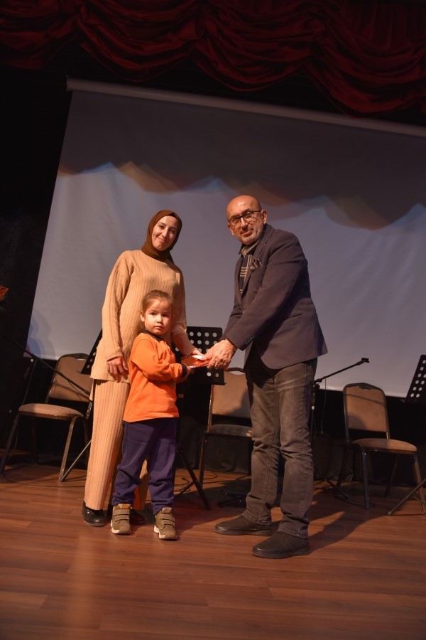 Ödülü çocuğu ile aldı Kompozisyon yarışmasında dereceye giren bir Kur’an kursu öğrencisinin ödülü verilirken çocuğun annesinden önce ödülü almaya çalışma hareketi salondakiler tarafından büyük alkış aldı. Mini konser Etkinlik TUNA-DER yönetmeni Çiğdem Sabuncuoğlu ve saz ekibinin verdiği mini bir konser ile sona erdi.