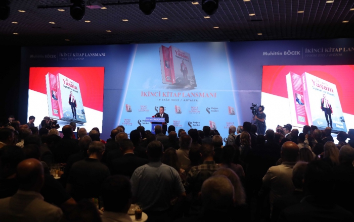 Antalya Büyükşehir Belediye Başkanı Muhittin Böcek’in ikinci kitabi İkinci Yaşam; ‘Siyaset ve İhanet ’in tanıtım toplantısına Cumhuriyet Halk Partisi (CHP) Antalya İl Başkanı Nuri Cengiz, İYİ Parti Antalya İl Başkanı Mehmet Başaran, Akdeniz Üniversitesi Rektörü Prof. Dr. Özlenen Özkan, Eski Büyükşehir Belediye Başkanı Bekir Kumbul, Mustafa Akaydın, Antalyaspor Başkanı Aziz Çetin, belediye başkanları, kamu kurum temsilcileri, iş ve siyaset dünyasından çok sayıda davetli katıldı. Başkan Muhittin Böcek, salonda davetliler ile tek tek tokalaşarak ‘Hoşgeldiniz” dedi. Yeni kitabın lansmanı Başkan Muhittin Böcek’in hayatını anlatan kısa film gösterimi ile başladı.