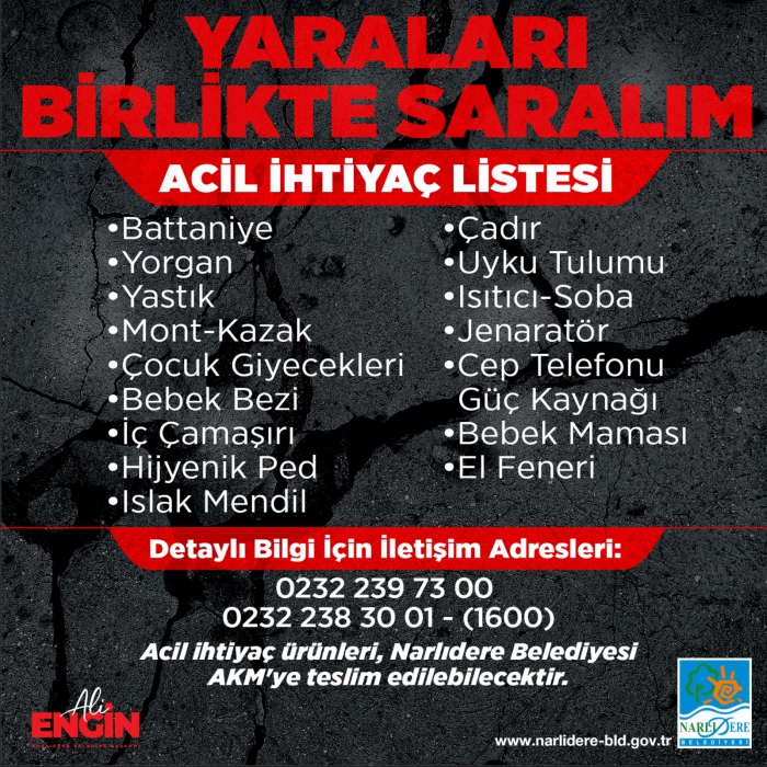 NARLIDERE’DEN DEPREM BÖLGESİ İÇİN YARDIM KAMPANYASI