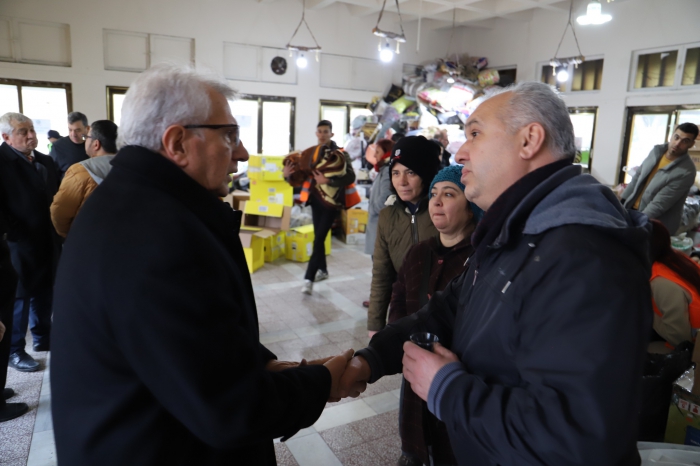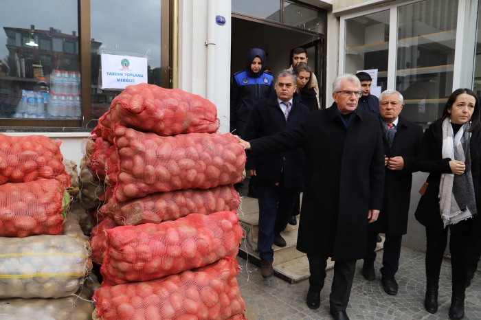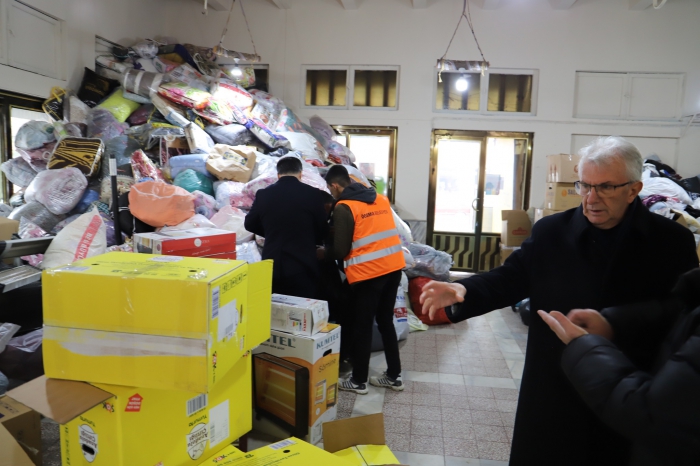 “GÖNÜL İLETİSİ OLARAK ULAŞTIRACAĞIZ” Acıların hafifletilmesi adına bu kampanyaya destek veren her bir hemşehrime çok teşekkür ediyorum. Burada yardımların kabul işlemlerinde görev yapan çalışma arkadaşlarımıza ve gönüllülerimize de kolaylıklar diliyorum. Bu güzel yardımları gönül iletisi olarak ulaştırmak üzere var gücümüzle çalışacağız. Gönüllü olup kamyonuyla, TIR’ıyla nakliyeye destek vermek için arayan hemşehrilerimiz oldu. Acıları hep birlikte böyle hafifletmek için mücadele edeceğiz. İzmir Büyükşehir Belediyemizin koordinasyonuyla hareket ediyoruz. Tüm yardımlar Fuar İzmir’de birleştirilip bölgeye sevk edilecek. Hemşehrilerimiz de yardımları için 0232 544 20 30 numaralı telefondan bize ulaşabilirler. Afette yitirdiğimiz yurttaşlarımıza Allah’tan rahmet, yaralılarımıza acil şifalar, kurtarma ekiplerimize kolaylıklar diliyorum. Bir kez daha geçmiş olsun dileklerimi sunuyorum” dedi.