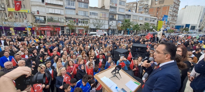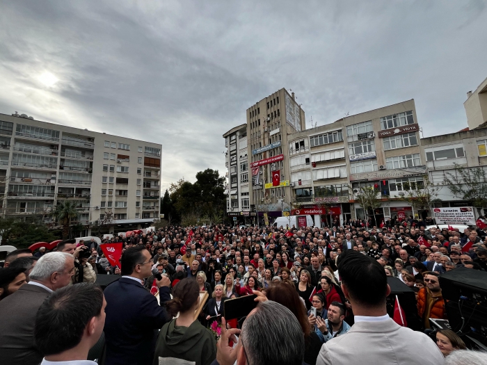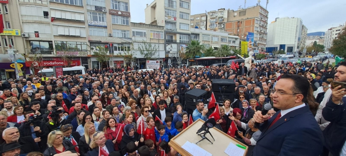 İzmir Büyükşehir Belediye Başkan Aday Adayı Olgun Atila, doğup büyüdüğü Bornova'da 5 bin kişiye hitap etti. İlçe Başkanlığı ziyareti mitinge dönüşen buluşmada Atila'nın konuşması sık sık slogan ve alkışlarla kesildi.