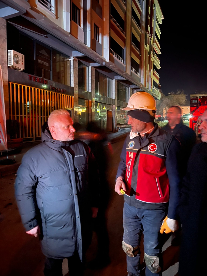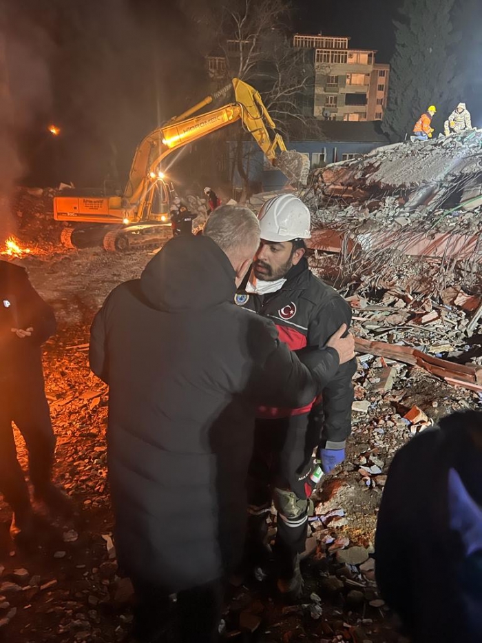 Titizlikle çalışılıyor Menemen Belediyesi Arama Kurtarma (MAKUR) ekibinin Gaziantep İslahiye’deki 10 binanın yıkıldığı alanda yaptığı çalışmaları yerinde takip eden Pehlivan, “Diğer 9 şehrimiz gibi burada da çok sayıda bina yıkılmış durumda. Tarifi olmayan ağır bir tablo var. Cenazelerimiz var, yaralılarımız var. Ama şunu gördüm ki; umut da var. Her bölgede gece gündüz yoğun bir çalışma yürütülüyor. Bizim ekibimiz de AFAD Koordinasyonunda bir can kurtarmak için titizlikle çalışıyor. Emeklerine, yüreklerine sağlık. Allah, bölgede görev yapan tüm ekiplere güç kuvvet versin, işlerini kolaylaştırsın” diye konuştu.