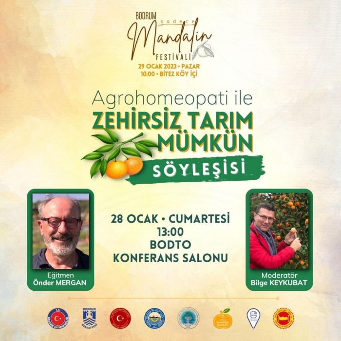 Festival kapsamında 28 Ocak 2023 Cumartesi günü Ticaret Odası Konferans Salonunda “Agrohomeopati ile Zehirsiz Tarım Mümkün” konulu söyleşi yapılacak.