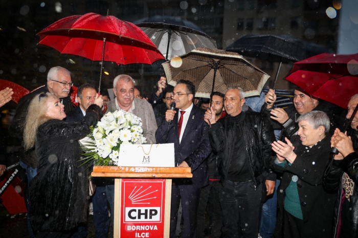 CHP Bornova İlçe Başkanı Ertürk Çapın, "Olgun başkan bugüne kadarki siyasi kariyerinde, bugün de söylediği gibi mücadeleyi siyasette bırakmayan, kendisi için olmasa da haklı için, kent için mücadelesini başarılı şekilde getirmiş, başarılı bir kardeşimiz. Simdi İzmir'imizin büyük şehirine aday olmakla bir Bornovalı olarak el üstünde tutmamız gereken bir kardeşimiz. Bize düşen Bornova'dan çıkan kardeşimize destek verip yanında olmak. Yolu açık olsun. Yolunu açmak bizim görevimiz." dedi.