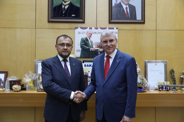 Sakarya Büyükşehir Belediye Başkanı Ekrem Yüce, Ukrayna Ankara Büyükelçisi Vasyl Bodnar’ı konuk etti. Başkanlık makamında gerçekleşen görüşmede Büyükşehir ve SASKİ bürokratları hazır bulundu. Başkan Yüce, Ukrayna Büyükelçisi Bodnar ile görüşmesinde bölgedeki son gelişmeler, Ukrayna ile Türkiye arasındaki ekonomik ilişkiler ve iş birliği olanakları masaya yatırıldı.