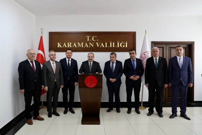 Sanayi ve Teknoloji Bakanı Mustafa Varank, bir dizi ziyaret ve incelemelerde bulunmak üzere ilimizi ziyaret etti. Karaman Valiliği önünde törenle karşılanan Bakan Mustafa Varank, Vali Mehmet Alpaslan Işık’ı makamında ziyaret ederek valilik şeref defterini imzaladı. Ziyaret anısına Vali Işık, Bakan Varank’a üzerinde Türkçe fermanı ile Karamanoğlu Mehmet Bey'in figürünün yer aldığı biblo hediye takdim etti.