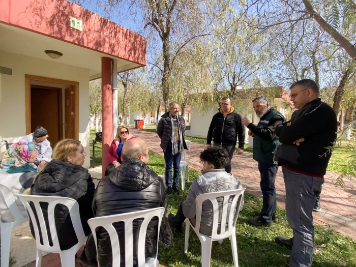 AK Parti Seferihisar İlçe Teşkilatı Sosyal Politikalar Başkanlığı tarafından oluşturulan heyetin ilçede depremzedeleri ağırlayan tesisleri ziyaret ederek burada depremzede ailelerle bir araya gelip yetkililerden bilgi aldıklarını belirten Başkan Aydın: “Bugün Seferihisar’da depremzede aileleri Sosyal Politikalar Başkanlığımız tarafından oluşturulan heyet ile birlikte ziyaret ettik. Kurumlar depremzedelerin ihtiyaçları ivedilikle ve büyük hassasiyetle karşılanıyor. Gelen talepler hızlıca çözüme kavuşturuluyor. Devlet Su işleri kampı ziyaretimizde odalara klima alınması ve bağlanması; depremzede aileler için düzenli berber ve kuaför geliyor oluşu; çocuklarla özel ilgilenilmesi tanık olup gurur duyduğumuz gelişmeler” dedi.