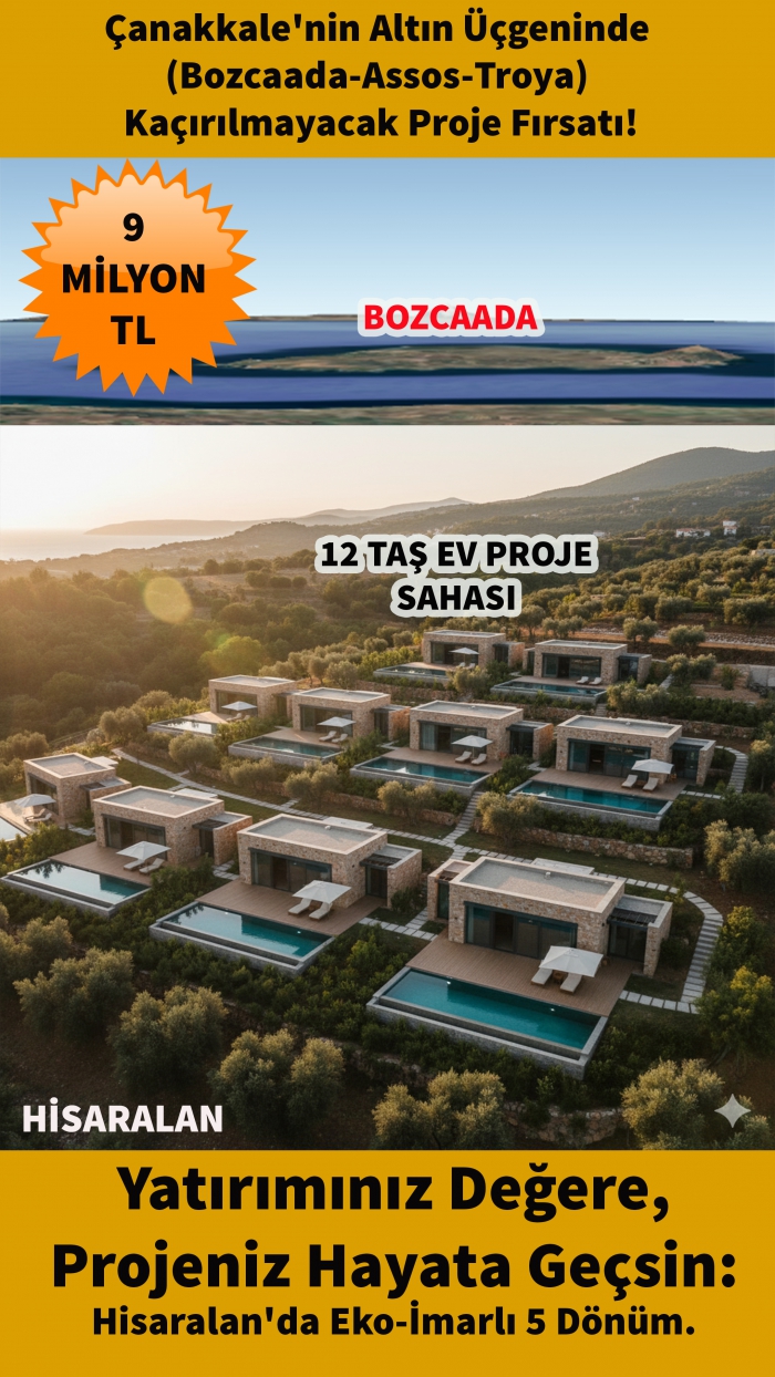 Stratejik ve Değerli Lokasyon: Hisaralan köyü, bir yandan Kaz Dağları'nın sunduğu eşsiz doğa ve sağlık dolu atmosferi sunarken, diğer yandan Ege'nin en popüler turizm merkezlerine, antik kentlere ve ulaşım akslarına olan yakınlığı ile öne çıkmaktadır. Bölge, son yıllarda gayrimenkul değer artışında Türkiye şampiyonu olmuş ve yatırımcısına ciddi kazançlar sağlamıştır. Hazır ve Onaylı Konsept: Arazimiz, "eko imar" statüsü sayesinde bölgenin doğal dokusuna saygılı, estetik ve talep gören bir konsepte ev sahipliği yapma potansiyeline sahiptir. 12 adet taş evden oluşacak butik bir site veya turizm tesisi projesi, hem yerli hem de yabancı yatırımcılar için yüksek cazibe potansiyeli taşımaktadır. Yüksek Getiri Potansiyeli: Proje tamamlandığında, villalar ayrı ayrı satılarak yüksek bir kâr marjı elde edilebilir veya bir turizm tesisi olarak işletilerek (butik otel, yoga merkezi, kiralık villalar vb.) sürekli ve döviz bazlı bir gelir akışı sağlanabilir. Bozcaada ve Assos'a olan yakınlık, tesisin doluluk oranını yıl boyunca yüksek tutacaktır. Taş Ev Mimarisi: Bölgenin ruhuyla bütünleşen taş ev konsepti, sadece estetik bir tercih değil, aynı zamanda dayanıklılığı, yazın serin, kışın sıcak tutan doğal yalıtım özelliğiyle de öne çıkan, değeri her zaman korunan bir mimari anlayıştır.LOKASYONUN SUNDUĞU AYRICALIKLAR