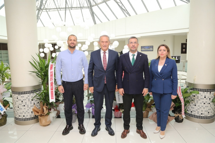 SATSO Yönetim Kurulu Başkanı A. Akgün Altuğ ve Meclis Başkanı Erdem Ercan Sakarya Esnaf ve Sanatkarlar Odaları Birliği Başkanı Hasan Alişan’ı makamlarında ağılrladı.