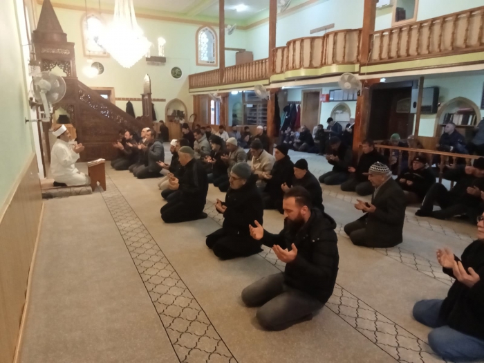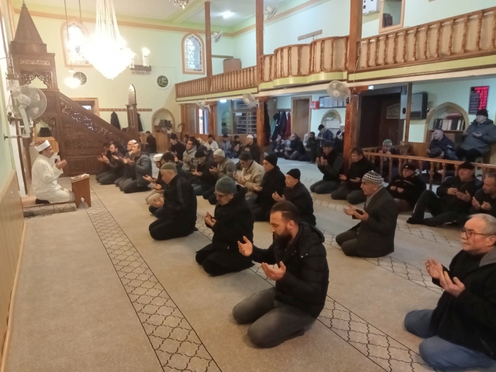 İzmir’in Foça İlçesi’nde hafta sonları gerçekleştirilen “Sabah Namazı Buluşmaları”nın bugünkü programı 568 yıllık tarihi Fatih Camii’nde gerçekleştirildi. 1455 yılında Fatih Sultan Mehmet tarafından yaptırılan ve adını taşıyan camide depremzedeler için dua edildi.
