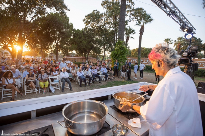 91. İzmir Enternasyonal Fuarı ile eşzamanlı düzenlenen uluslararası gastronomi fuarı Terra Madre Anadolu renkli etkinliklere sahne oluyor. İzmir Büyükşehir Belediye Başkanı Tunç Soyer, fuarın ikinci gününde “Mutfak Show” sahnesinde Michelin yıldızlı ünlü İtalyan şef Cristina Bowerman’ın vegan risotto yapışını izledi. Başkan Soyer, İzTarım A.Ş.’nin “İzmirli” markası ile ürünlerini tanıttığı standı da ziyaret etti.