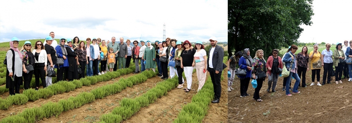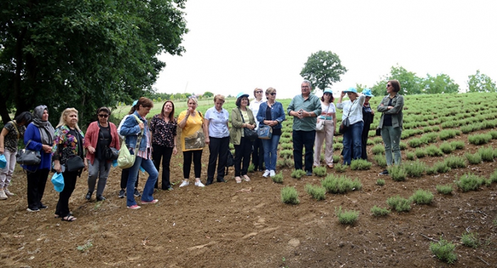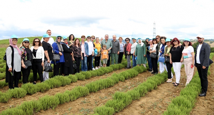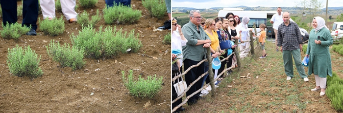 “HEM ÇİFTÇİ HEM DE ÜLKEMİZ KAZANACAK” Büyükşehir’in organizasyonunda kadın muhtarlara eşlik eden Kırsal Tarım ve Aromatik Bitkiler Koordinatörü Abdullah Köktürk, Kocaeli Büyükşehir Belediye Başkanı Tahir Büyükakın'ın ortaya koyduğu vizyon çerçevesinde köylerde alternatif ürünleri üretmeyi amaçladıklarını, tıbbi ve aromatik bitki üreticiliğinin de bunlardan biri olduğunu dile getirdi. Gezide kadın muhtarlara, “Aromatik bitkiler, tıbbi alanda, kozmetik sanayinde ve gıda alanında kullanılan çok hassas bitki türleridir. Yetiştirilmesi biraz zordur. Arpaya, buğdaya, yulafa pek benzemez. Aromatik bitkiler devamlı bakım isterler ama çok kıymetli ve değerli ürünlerdir. Şu anda İzmit Halinin yanında 43 dönüm üzerine bir fabrika yapılıyor. O fabrikada damıtım ve kurutma yapılacak, çiftçilerimize eğitim verilecek. Bu projeyle hem çiftçi kazanacak hem de ülkemiz kazanacak. Aromatik bitkilere ilgi çok yüksek ve bu bitkilerin ürünleri yüzde 80 oranında ithal ediliyor. Dolayısıyla çiftçi kazanacak, Türkiye kazanacak” bilgisi verildi.