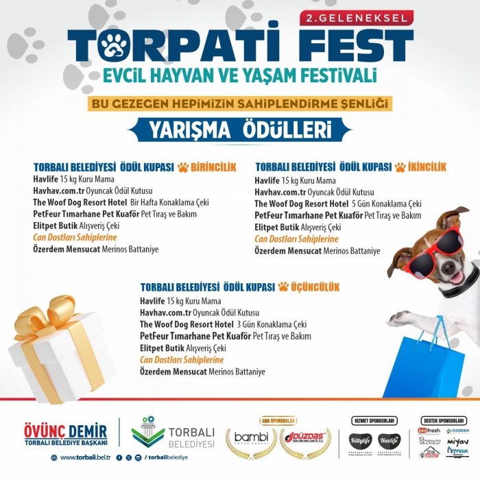 Festivalin bu yılki odak noktası, Torbalı Belediyesi Veteriner İşleri Müdürlüğü’nün sahiplendirme çalışmaları olacak. Bakımevinde kalan kedi ve köpekler için özel olarak hazırlanacak sahiplendirme standında, her hayvanın fotoğrafı, adı, cinsi ve karakteristik özellikleri dijital ve fiziki ortamda tanıtılacak. Yeni yuvasına kavuşan can dostlara; mama, battaniye, oyuncak kutusu ve alışveriş çeki gibi çeşitli hediyeler verilecek. Ayrıca aynı gün mikroçip ve pasaport işlemleri de stantta yapılacak.