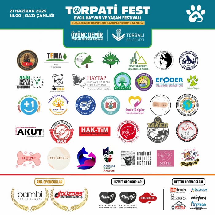 Torbalı Belediyesi’nin ev sahipliğinde gerçekleşecek TorPatiFest, sivil toplum kuruluşlarının güçlü işbirliğiyle gerçekleştirilecek. Aralarında HAYTAP, TEMA, Ege Orman Vakfı, ÇYDD, Yaşa Çocuk Derneği, İzmir Down Sendromu Derneği, Sehayder ve AKUT gibi 40'tan fazla kurum ve kuruluşun bulunduğu festivalde, çocuk haklarından çevreye, hayvan refahından afet bilincine kadar pek çok tema sahneye taşınacak.