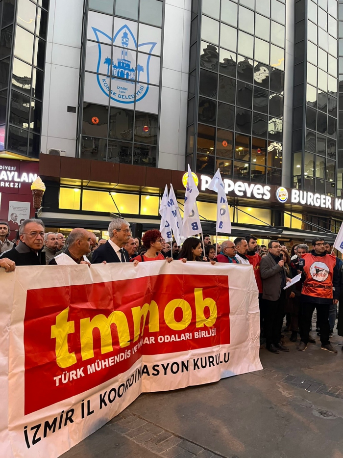 6 Şubat 2023 tarihinde, ilki Kahramanmaraş Pazarcık merkezli 7.7, ikincisi ise Kahramanmaraş Elbistan merkezli 7.6 büyüklüğündeki depremler sonucunda on binlerce vatandaşımızı kaybettiğimiz felakete ilişkin TMMOB İzmir İl Koordinasyon Kurulu tarafından 20 Şubat Pazartesi Günü saat 19.00’da Türkan Saylan Kültür Merkezi önünde basın açıklaması gerçekleştirildi.