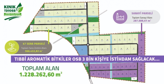 İzmir ilin Kınık ilçesinde Tıbbi Aromatik Bitkiler ihtisas organize sanayi bölgesi kuruluyor. Kınık ilçesi Tıbbi Aromatik Bitkiler ile adını duyuracak, ve bu işi profesyonelce yapacak. Tarıma dayalı organize sanayi bölgesi 1 milyon 230 bin m2 lik bir alan kaplıyor. Tıbbi Aromatik Bitkiler Organize sanayi bölgesi olarak Türkiye'de ilk olacak, yaklaşık 3 bin kişiye iş istihdamı sunulacak. Kınık bölgesinin tıbbi aromatik bitki yetiştirme üzerine iklim ve toprağının müsait olduğu belirtildi. Bölge de iklim ve hava şartları olarak maksimum verim elde edilecek. OSB kurulumu ve istihdam projeleri devlet tarafından desteklenecek.