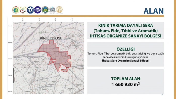 Bu proje ile sebze, meyve, çiçek, tıbbi ve aromatik bitki tohumu üretimi, ithalat ve ihracat odaklı fide üretimi, teknolojik seralarda tıbbi ve aromatik bitki üretimi yapılması planlanmaktadır. Ayrıca alan içinde planlanacak sanayi parselleri ile drog, uçucu yağ ve ihtisas konusuna uygun diğer sanayi tesislerinin kurulması da amaçlanmaktadır.