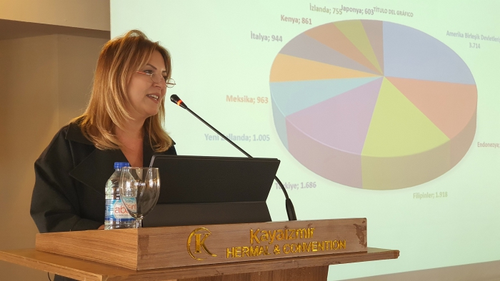 Jeotermal enerjinin, Türkiye’nin tecrübesini ve bilgisini ihraç ettiği tek enerji dalı olduğunu hatırlatan JED Genel Koordinatörü Elif Ferdal Karakaş, pek çok Türk şirketinin dünyanın farklı ülkelerinde arama, sondaj ve santral yatırımlarını yapabilecek seviyede olduğunu vurguladı. Jeotermal enerjiyi “anaç bir enerji kaynağı” olarak tanımlayan Karakaş, sözlerini şöyle sürdürdü: “Jeotermal enerjinin elektrik üretimin dışında bölgesel ısıtma, seracılık, balıkçılık ve termal turizm gibi pek çokkullanım amacı var. Bugün ülkemizde 150 bin konutun ısıtmasını jeotermal ile sağlıyoruz, bu sayıyı 5 milyona çıkarabiliriz. Yaklaşık 13 bin dönüm seranın ısıtması jeotermal ile yapılıyor, 50 bin dönümde seracılık yapabiliriz. Türkiye genelinde yaklaşık 1500 doğal çıkışımız ve 300 üzerinde termal tesisimiz var. Bu da 3-4 milyon arası turizm hareketi sağlıyor, bunu 10 milyona çıkarabiliriz.Bu nedenle doğrudan kulanım ile entegre kullanımı teşvik edecek mekanizmalar da geliştirilmeliyiz.