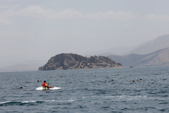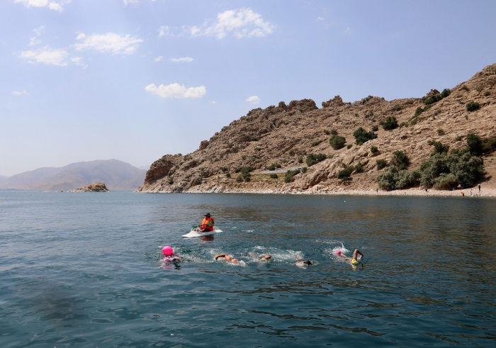 Van Büyükşehir Belediyesince düzenlenen ‘1. Van Denizi Yüzme Festivali’ dördüncü gününde de dolu dolu geçti. Kuzu Adasından Akdamar Adasına kulaç açan 10’larca lisanslı yüzücü, yaklaşık 5 kilometrelik alanı yüzerek geçti.
