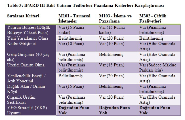 Ancak IPARD III başvuru rehberleri ve puanlama tabloları dikkatle analiz edildiğinde, son derece önemli bir tespit ortaya çıkmaktadır: Puanlama tablolarında, "Projenin Yerel Eylem Grubu Stratejisi (YKS) ile uyumlu olması" şeklinde doğrudan puan getiren spesifik bir madde bulunmamaktadır. Bu durum, YEG uyumunun sağladığı avantajın mekanik bir puandan ziyade, projenin genel "onaylanabilirliği" ve rekabetçi bir ortamda "tercih edilme" olasılığını artıran niteliksel bir güçten kaynaklandığını göstermektedir.
