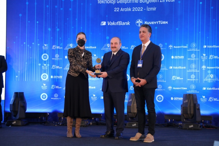 Türkiye’nin saygın yükseköğretim kurumlarından Dokuz Eylül Üniversitesi (DEÜ), İzmir’de Sanayi ve Teknoloji Bakanı Mustafa Varank’ınkatılımıyla gerçekleşen‘AR-GE ve Tasarım Merkezleri ile Teknoloji Geliştirme Bölgeleri Zirvesi ve Ödül Töreni’ne başarılarıyla damga vurdu. Balçova’daki Kaya Termal Otel’de yapılan törende Dokuz Eylül Üniversitesi Teknoparkı (DEPARK), Teknoloji Geliştirme Bölgeleri 2021 Yılı Performans Endeks Sonuçları neticesindegenel sıralamada 70,Teknoloji Geliştirme Bölgesi sıralamasındabir yıl içinde 15 sıra birden yükselerek14’üncü basamakta yer alırken; “Gelişmekte Olan Teknoloji Geliştirme Bölgeleri” kategorisinde ise üçüncülük ödülünün sahibi oldu. Dokuz Eylül Üniversitesi Rektörü Prof. Dr. Nükhet Hotar, ödülü Sanayi ve Teknoloji Bakanı Mustafa Varank’ın elinden aldı.