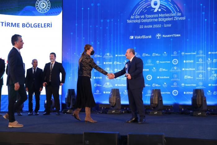 Dokuz Eylül Üniversitesi (DEÜ), Sanayi ve Teknoloji Bakanı Mustafa Varank’ın katılımıyla gerçekleşen ‘AR-GE ve Tasarım Merkezleri ile Teknoloji Geliştirme Bölgeleri Zirvesi ve Ödül Töreni’nde başarılarıyla göz doldurdu. “Gelişmekte Olan Teknoloji Geliştirme Bölgeleri” kategorisinde üçüncülük ödülünün sahibi olan Dokuz Eylül Üniversitesi’ne ödülünü Sanayi ve Teknoloji Bakanı Mustafa Varank verdi. DEÜ Rektörü Prof. Dr. Nükhet Hotar,kent ekonomisine ihracat katkısı 10 milyon doları aşanDEPARK’ın başarısının tesadüf olmadığını söyleyerek, “Bilim ve teknolojiye yaptığımız yatırımların meyvelerini toplamaya devam ediyoruz” dedi.