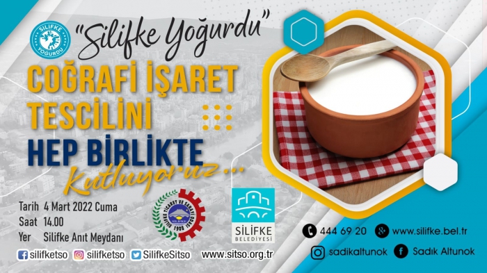 Türk Patent ve Marka Kurumuna yaptıkları başvurunun sonuçlandığına değinen Silifke Ticaret ve Sanayi Odası Başkanı Nurettin Kaynar düzenlenen kutlama programında bir konuşma yaptı. Oda Başkanı Kaynar konuşmasında, “Oda olarak Silifke’mizin markalaşması ve kentleşmesi için var gücümüzle çalışıyoruz. 2019 yılında Silifke Çileğinin tescil işlemlerini tamamlayarak bu ürünümüzün Coğrafi İşaret tescil belgesini aldık. 2015 yılında başladığımız Silifke Yoğurdumuzun tescil işlemleri, zorlu süreç neticesinde sonuca kavuşmuş ve bu ürünümüzde tescil belgesini almaya hak kazanmıştır.