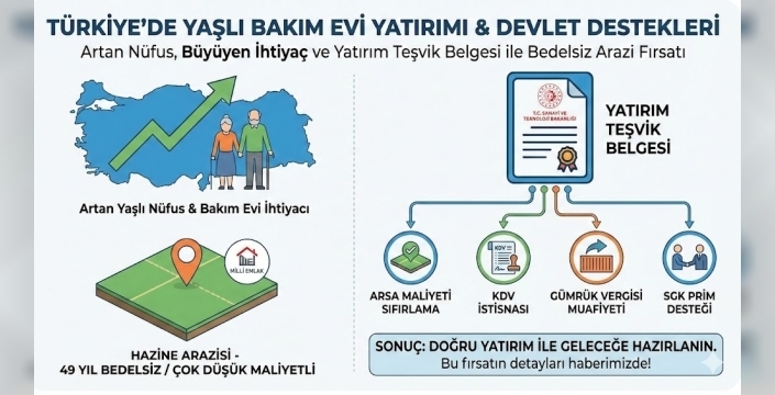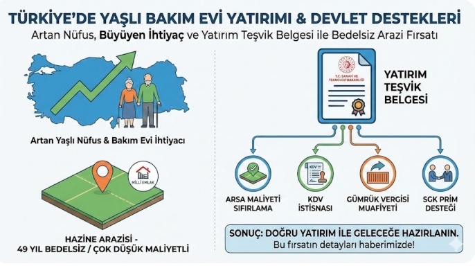 Bunun yerine Çevre, Şehircilik ve İklim Değişikliği Bakanlığı'na bağlı Milli Emlak Genel Müdürlüğü (Hazine Arazileri) çok daha yatırımcı dostudur. Yaşlı bakım evleri "kamu yararı" taşıdığı için Milli Emlak bu projelere öncelik tanır. Yatırım Teşvik Belgesi ile başvurulduğunda, arazi rayiç bedel üzerinden değil, emlak vergi değeri üzerinden hesaplanan sembolik bir rakamla 49 yıllığına (İrtifak Hakkı) tahsis edilir.