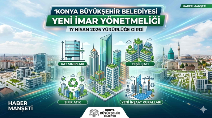 17 Nisan 2026 tarihli ve 33227 sayılı Resmî Gazete'de yayımlanan "Konya Büyükşehir Belediyesi İmar Yönetmeliği" ile Konya sınırlarındaki yapı ve yapılaşma kuralları yeniden şekillendi. Şehrin plan, fen, sağlık ve sürdürülebilir çevre şartlarına uygun şekilde gelişmesini hedefleyen yeni yönetmelik; bina kat sayılarından yeşil çatı uygulamalarına, sıfır atık zorunluluğundan asansör standartlarına kadar pek çok kritik düzenlemeyi barındırıyor.