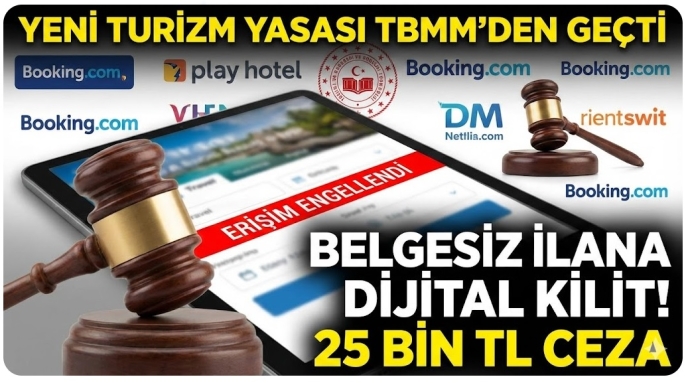 TBMM Genel Kurulu'nda kabul edilerek yasalaşan "Turizmi Teşvik Kanunu ile Bazı Kanunlarda Değişiklik Yapılmasına Dair Kanun Teklifi", turizm sektöründe dijital denetim çağını başlatıyor. Yapılan düzenleme ile belgesiz konaklama işletmelerinin internet üzerinden müşteri bulması fiilen engellenirken, kurallara uymayan işletmelere ve ilan platformlarına ağır yaptırımlar getirildi.