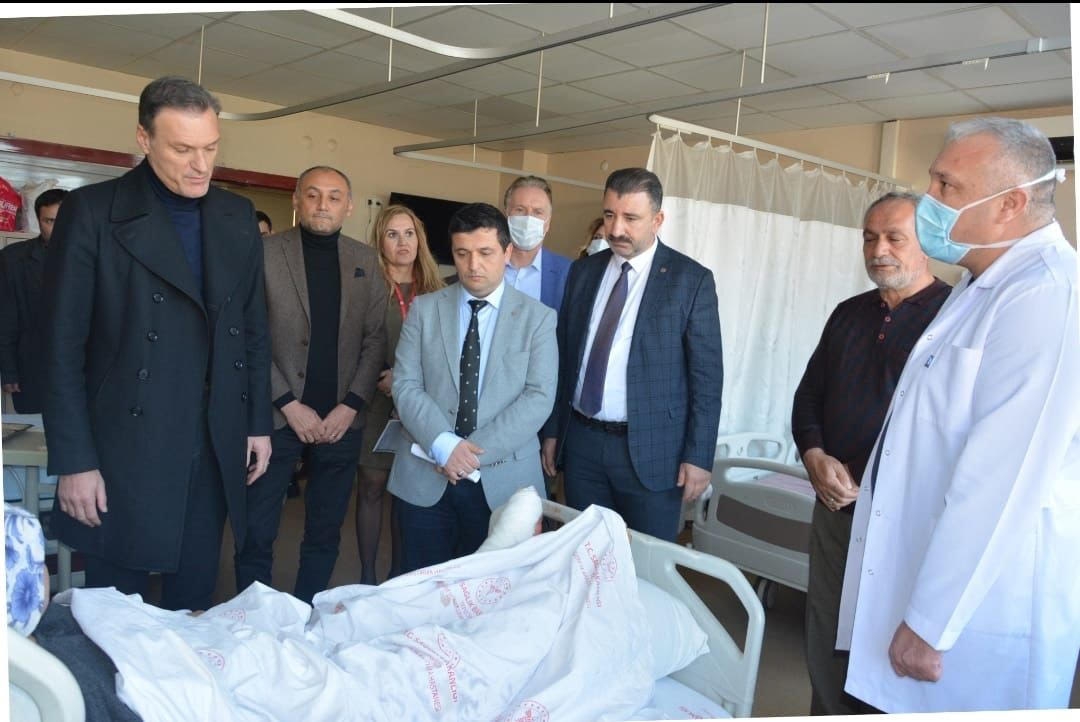 Ziyarette AK Parti Konak İlçe Başkanı Mehmet Sait Başdaş da, depremin yıktığı Adıyaman'dan geldiğini ifade edere, "Yaralarımızı sarana kadar on ilimizde ve nakledilen tüm yurttaşlarımızın yanında olacağız" dedi.