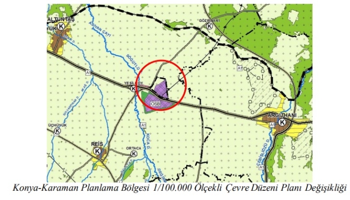 Daha önce Konya-Karaman Planlama Bölgesi planlarında "Turizm Bölgesi" ve "Kentsel ve Bölgesel Yeşil Alan" olarak tanımlanan yaklaşık 86 hektarlık alanın kaderi değişti. Konya Kültür ve Turizm İl Müdürlüğü, söz konusu alanın ilan edilmiş bir turizm koruma bölgesi kapsamında kalmadığını bildirerek, OSB’ye ilave edilmesinde sakınca görmedi.