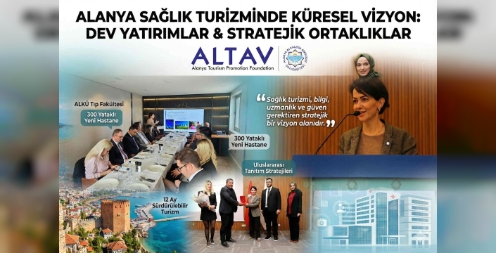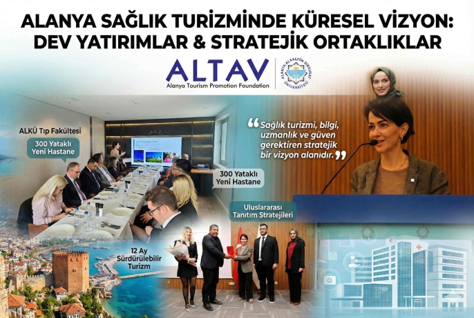 "ALTAV olarak bizler, Alanya’nın güçlü turizm altyapısını sağlık turizmi vizyonuyla birleştirerek şehrimizi dört mevsim yaşayan bir destinasyon olarak konumlandırmayı hedefliyoruz. Devletimizin sağladığı destek ve teşvik mekanizmalarıyla uluslararası pazarlardaki tanıtım faaliyetlerimize kararlılıkla devam ediyoruz."