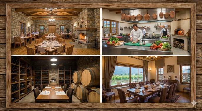 Tesisin odak noktası; kendi bağından, bahçesinden ve yerel üreticilerden sağlanan malzemelerle "tarladan sofraya" konseptini benimseyen üst segment bir Gastronomi Lokantası olacak. Ayrıca, Toroslar'ın endemik bitkileriyle hazırlanan çayların ve kahvelerin sunulduğu özel bir Aromakafe ve yöresel lezzet durakları, sadece otel misafirlerini değil, günübirlik ziyaretçileri de çekecek bir cazibe merkezi yaratacak.
