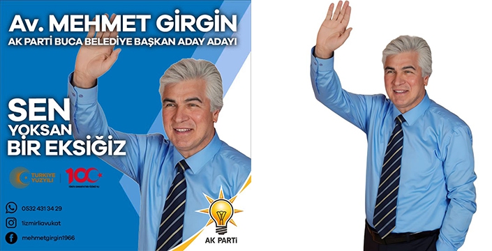 AK Partinin kuruluşundan bu yana aktif siyasetin içinde yer alan, Mehmet GİRGİN, Ak Parti Buca Belediye Başkan Aday Adayı oldu. Siyasete başladığı Buca İlçesinde 2004-2009 Yılları arasında Buca ve İzmir Büyükşehir Belediye Meclis Üyeliği yapan tecrübeli hukukçu, aynı zamanda Ak Parti Buca ve İBB Grup Sözcüsü olarak görev aldı. AK Partinin kurulduğu ilk günden bugüne kadar partinin her kademesinde görev yapan GİRGİN; 7 yıl AK Parti İl Başkan Yardımcılığı görevinin yanı sıra, Seçim İşleri Başkan Yardımcısı olarakta aktif olarak siyasi çalışmalarda bulundu.