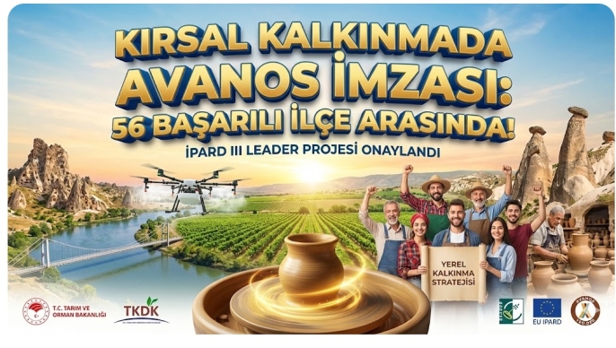 Türkiye’nin kırsal kalkınma haritasında Nevşehir’in incisi Avanos, stratejik bir zafer kazandı. Tarım ve Orman Bakanlığı ile TKDK koordinasyonunda yürütülen IPARD III Programı kapsamında, Avanos Kaymakamlığı’nın liderliğinde kurulan Avanos Yerel Eylem Grubu Derneği (Avanos YEG-DER), hazırladığı "Yerel Kalkınma Stratejisi" ile Türkiye genelinde desteklenmeye hak kazanan 56 başarılı grup arasına adını yazdırdı.