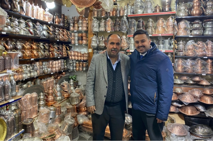 Gaziantep’in kültürel mirasına sahip çıkan zanaatkarlar da unutulmadı. Gaziantep Bakırcılar ve Saatçiler Esnaf Odası Başkanı Celal Açık’ı ziyaret eden Antalyalı, TKDK’nın zanaatkarlık kapsamında verdiği destekleri anlattı.