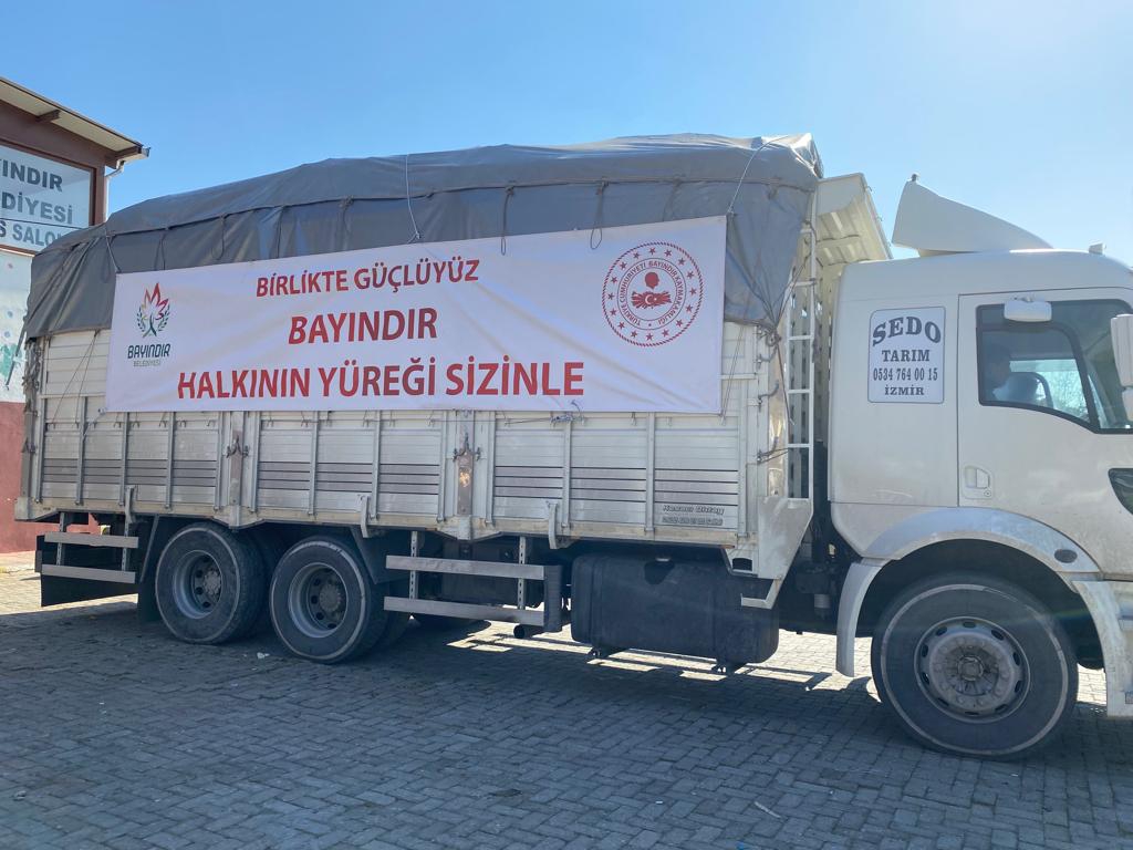Deprem bölgesinde yaraları sarmak için başlatılan ve tüm Türkiye’nin destek olduğu yardım kampanyasına Bayındır’ın da katkısı devam ediyor. Deprem gününden itibaren Bayındır Kaymakamlığı ve Bayındır Belediyesi başta olma üzere kamu kurumları ve Bayındırlılardan toplanan yardımlar tırlarla deprem bölgesine gönderiliyor.