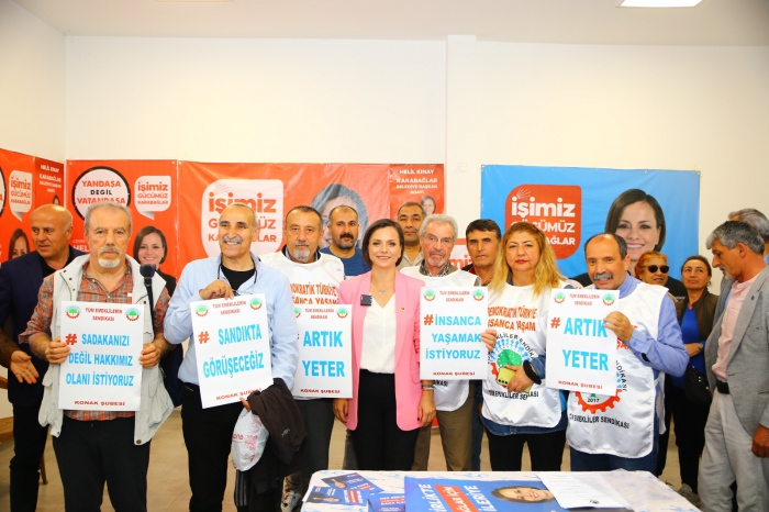 İzmir Iğdırlılar Kültür ve Dayanışma Derneği ziyaretinin ardından Tüm Emekliler Sendikası ile bir araya gelen Kınay, “Hak, emek, adalet” sözlerini Karabağlar’da belediye başkanı olarak gerçekleştirecek olmanın heyecanını paylaştı. Kınay, yıllarca yoldaşlarıyla birlikte yürüdüğünü vurgulayarak, emeğini ve çalışmalarını paylaştığı insanlarla her zaman dayanışma içinde olduğunu ifade etti. Karabağlar’da bu dayanışmayı büyütmeyi hedeflediğini belirtti.