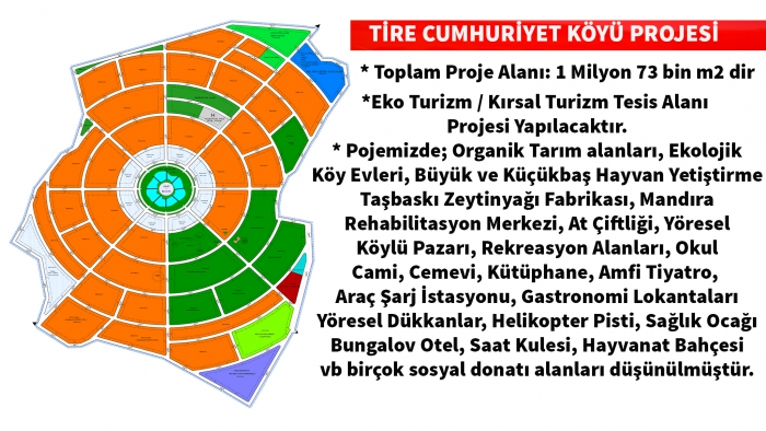 İzmir ili Tire ilçesi Yenioba mahallesi'nde 1 Milyon 73 bin m2 alanda resmi süreci devam eden İdeal Cumhuriyet Köyü Projemizin konumu gösterilmiştir. İdeal Cumhuriyet Köyü Projemiz Türkiye'de en büyük ölçekli Ekoturizm projesi olacaktır. Projemiz Çevreye duyarlı, inovatif teknoloji ile geleneksel yapılaşma harmanlanmış, kendi kendini doyuran örnek köy olarak planlanmıştır.