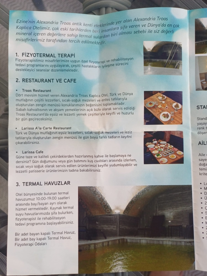 Tarihi Alexandria Troas antik kentinin eteklerinde yer alan tesis, dünyanın en yüksek mineral değerlerine sahip termal sularından birini modern konaklama standartlarıyla misafirlerine sunuyor. Doğanın kalbinde, tarihin izinde sağlıklı bir mola vermek isteyenler için bölgenin en donanımlı termal tesisi olarak dikkat çekiyor.