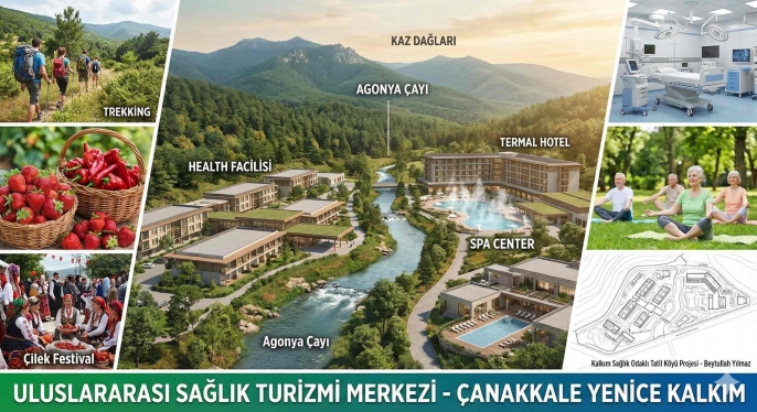ÇANAKKALE – Türkiye’nin yükselen değeri sağlık turizmi, Kaz Dağları’nın eşsiz doğasıyla birleşiyor. Çanakkale Yenice’ye bağlı Kalkım Beldesi’nde hayata geçirilen vizyon proje; uluslararası standartlardaki rehabilitasyon merkezleri, termal tesisleri ve tam teşekküllü hastane yapısıyla hem ulusal hem de uluslararası yatırımcıların odağı haline geldi.