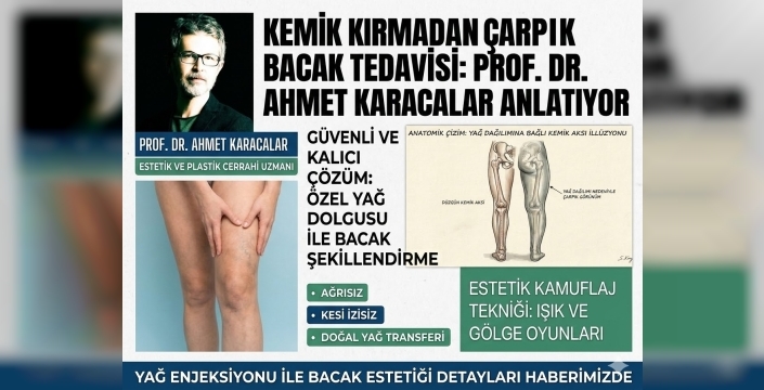 Estetik ve Plastik Cerrahi Uzmanı Prof. Dr. Ahmet Karacalar, çarpık bacak problemine karşı kemik kırma işlemlerine son veren yenilikçi "kamuflaj" tekniğini duyurdu. Askeri kamuflaj mantığından ilham alan bu yöntem, ışık, gölge ve özel yağ dolgu teknikleriyle bacak konturunu ameliyatsız bir şekilde yeniden şekillendiriyor.