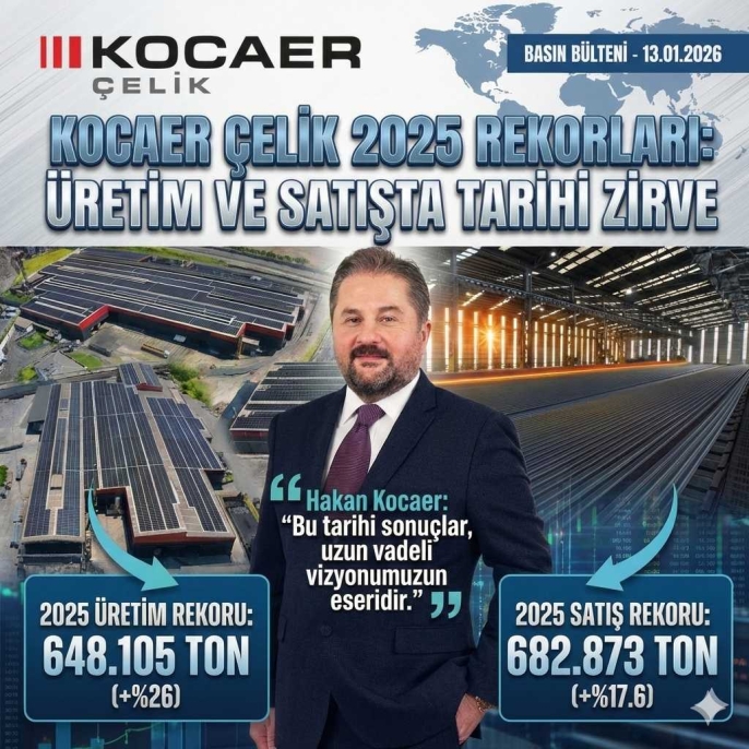 Küresel demir-çelik sektörünün zorlu bir sınavdan geçtiği 2025 yılında, Türkiye'nin lider profil üreticilerinden Kocaer Çelik, stratejik yatırımlarının karşılığını tarihi bir başarıyla aldı. Şirket, 13 Ocak 2026 tarihinde paylaştığı operasyonel sonuçlarla, hem üretim hem de satış miktarında kendi tarihinin en yüksek seviyelerine ulaştığını duyurdu.