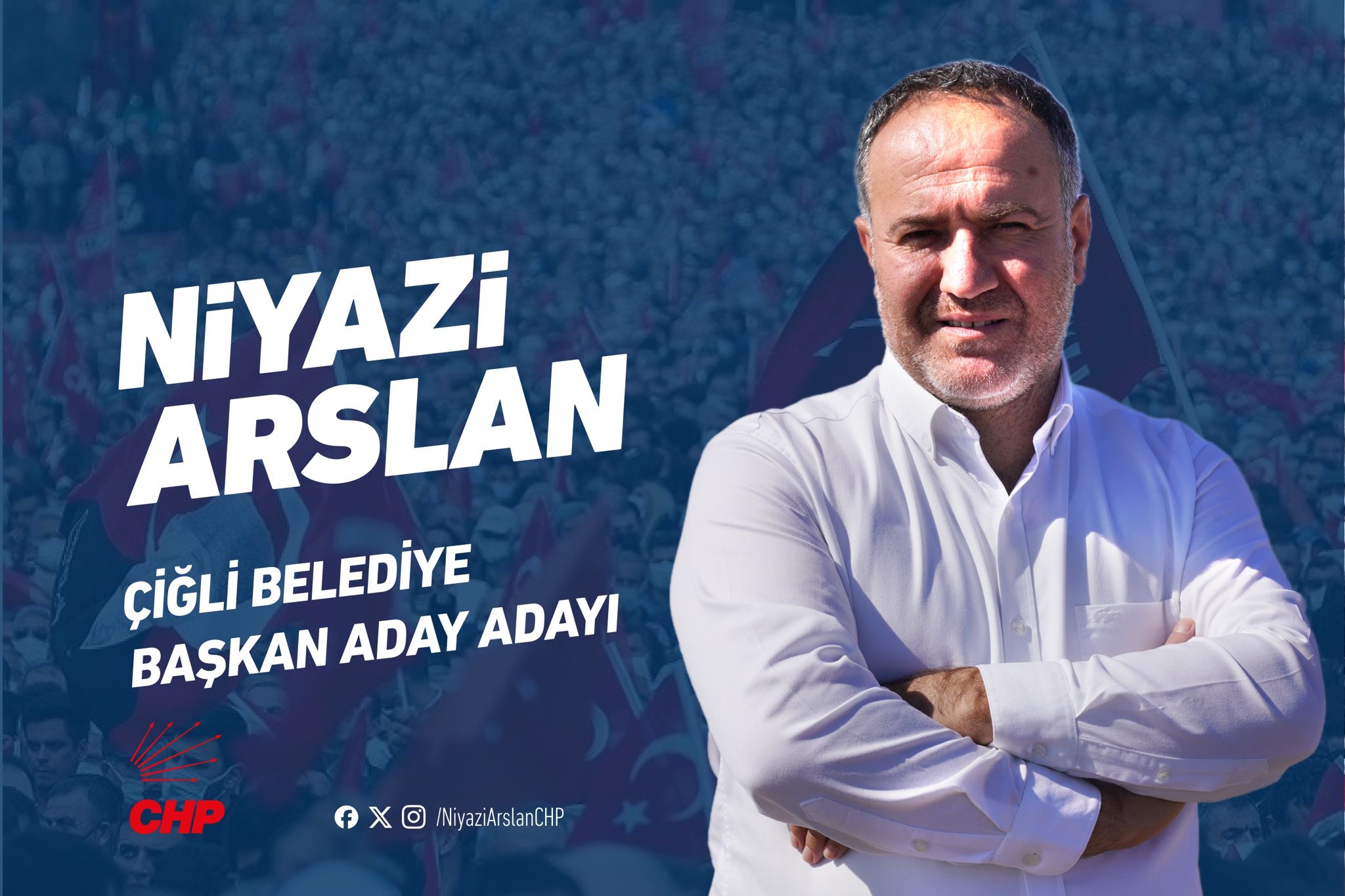 İkiz çocuklarının doğum günü olan 1 Aralık’ta ailesiyle beraber başvurusunu yapan ve bugünü özel olarak seçtiğini belirten Niyazi Arslan, “Dosyamı, canım evlatlarım, ikizlerimin doğum günü olan 1 Aralık’ta almış olmamın; değerli eşim ve ailemle almış olmanın anlamını biliyorum. Özellikle bugünü bekledim. Çünkü partili arkadaşlarımı, sizleri, hepinizi ailem olarak görüyorum. Değerli yol arkadaşlarım, sizlerden ricam şudur. Bana Çiğli’yi evlatlarınızı emanet eder gibi emanet edebilirsiniz.Çiğli bana emanet, ben de kendimi size emanet ediyorum.Hep beraber alnımızın akıyla sürdüreceğimiz bu yolculuğa başlıyoruz” diye konuştu.
