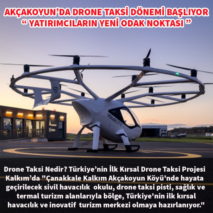 Çanakkale’nin Yenice ilçesi Kalkım Beldesi’ne bağlı Akçakoyun Köyü, Türkiye'nin kırsal kalkınma vizyonunu değiştirecek öncü bir projeye hazırlanıyor. İmza aşamasına gelen bu dev proje, Sivil Havacılık Okulu, Drone Taksi Ulaşım Sistemi, Ekolojik Mini Havaalanı, Termal Sağlık Turizmi ve Kadın Kooperatifleri ile Entegre Üretim Alanlarını kapsayan bütüncül bir kalkınma modeli olarak planlandı.
